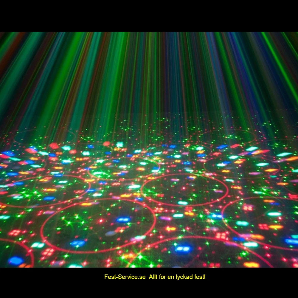 American DJ´s Stinger ger riktigt fina effekter på dansgolvet tack vare dess lampor med 15 olika färger i skarpa strålar som förstärks av en laser i rött och grönt (lasern kan stängas av)