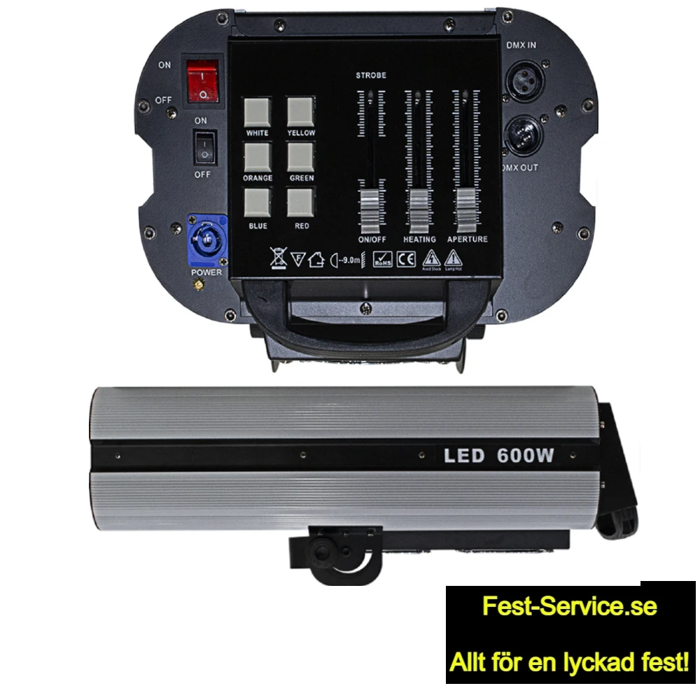 Mycket kraftfull följespot med hela 600 watts ledlampa.