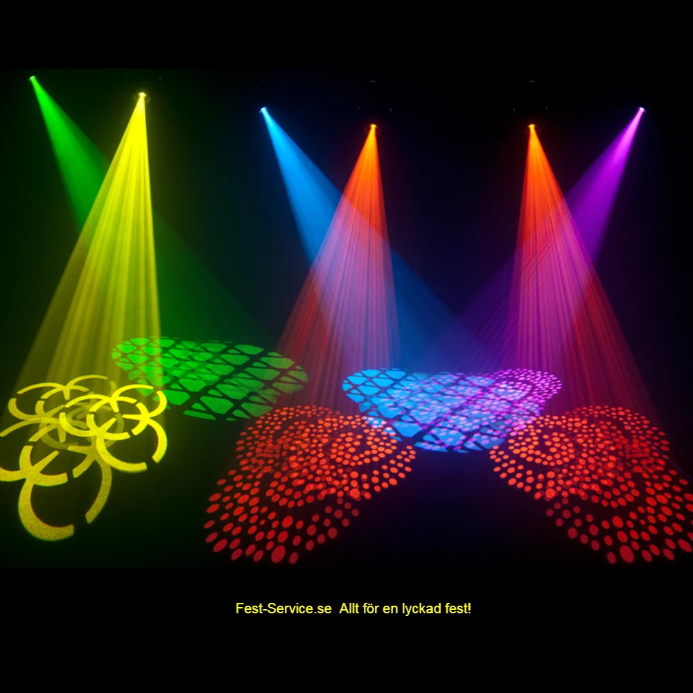 Använd de avancerade inbyggda programmen för att låta lamporna lysa och röra sig till musiken. Kan självklart också styras via DMX, vårt ljusbord Obey70 passar perfekt.