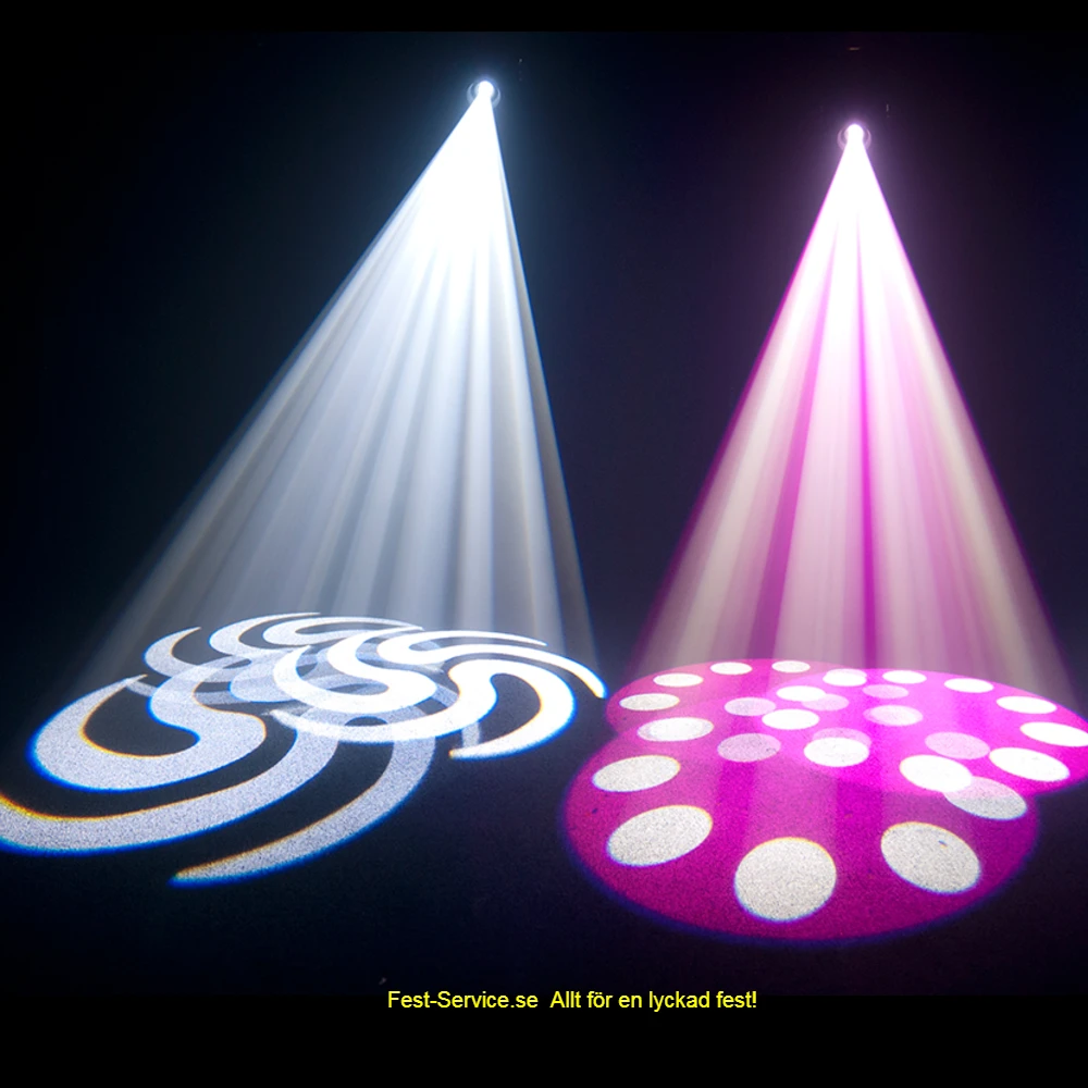 75 watts led moving head, kraftfull led med rörligt ljus, 8 färger + vit samt 7 gobos med mönster. Bra inbyggda program.