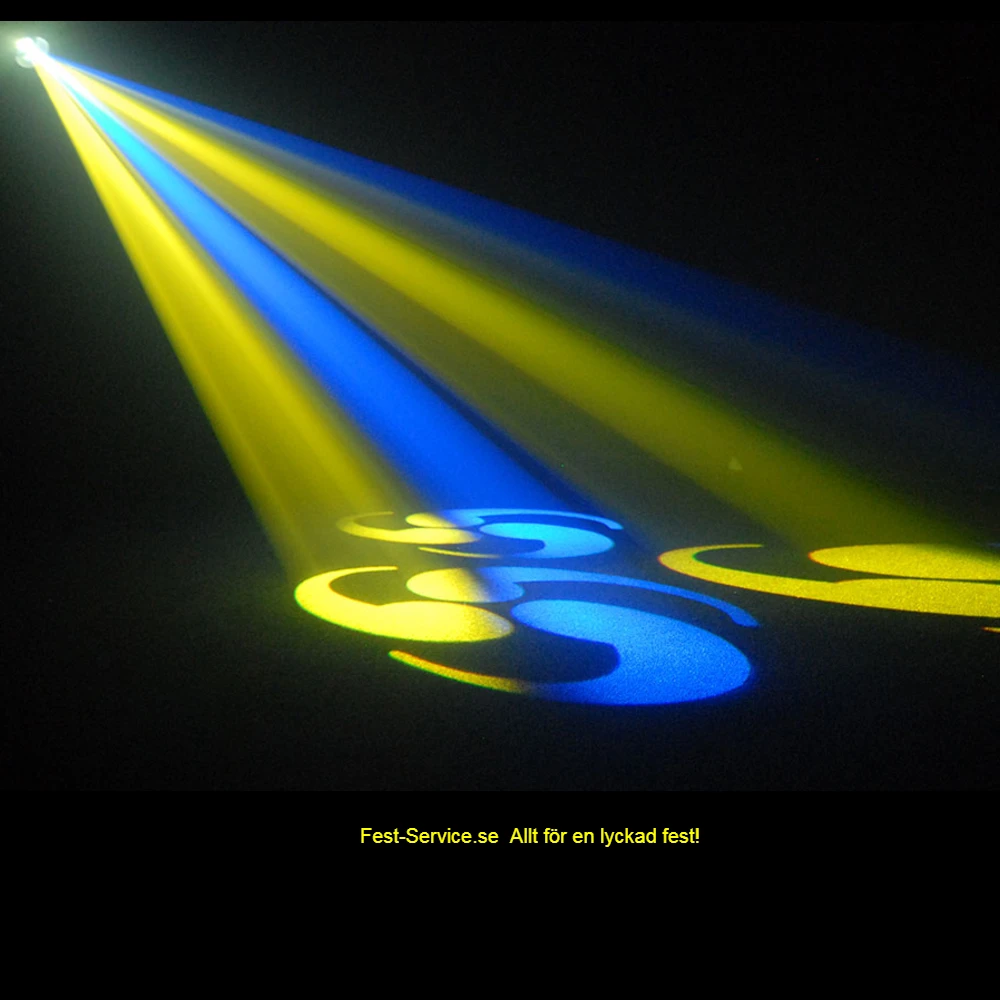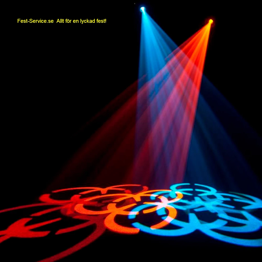 Med 3×60 watts led så ger denna moving head ett mycket bra ljusutbyte, vilket gör den lämplig även till större lokaler. 7 färger + vit samt 7 gobos med mönster. Bra inbyggda program.