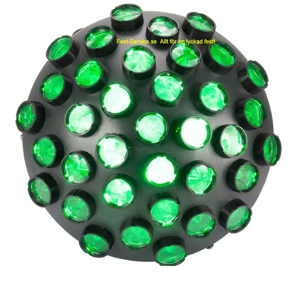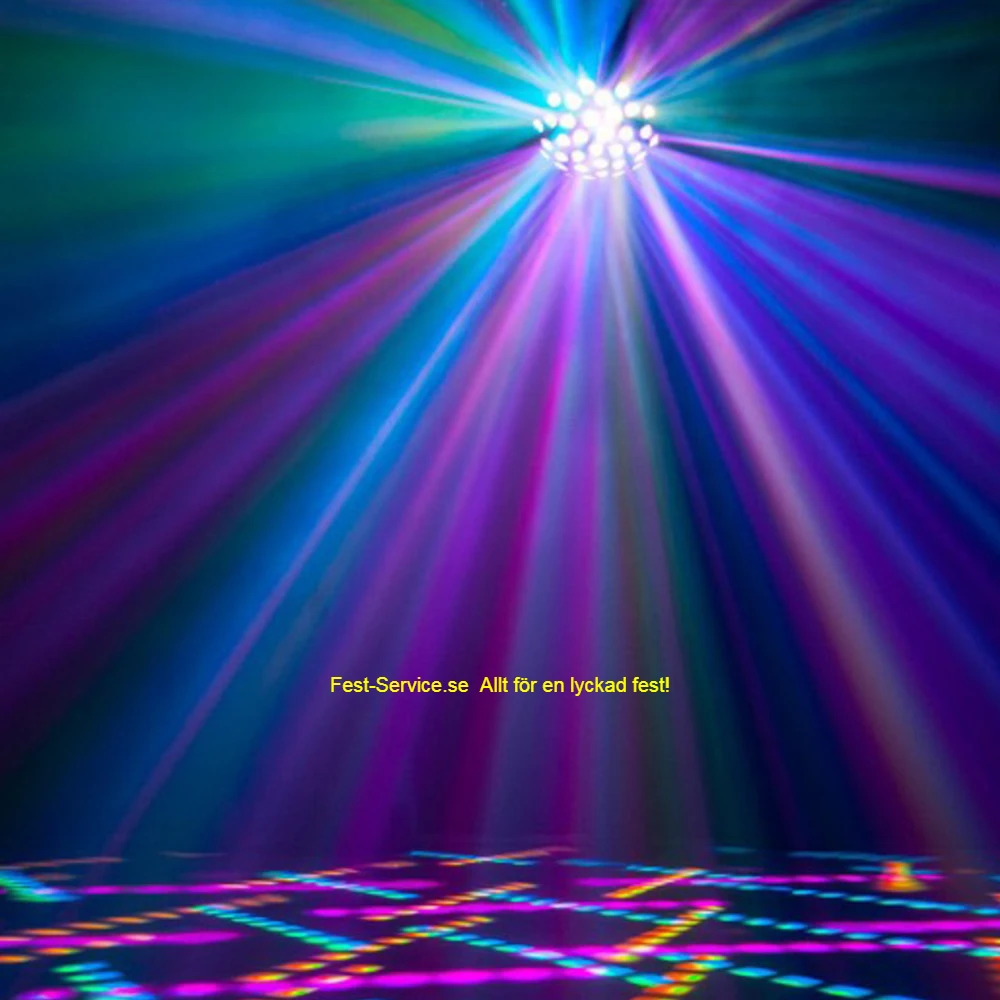 Roterande led-effekt som ger bra ljusspridning i lokalen. Helt musikstyrd via inbyggd mikrofon. Växlar färger och mönster till musiken. Riktigt effektfull!